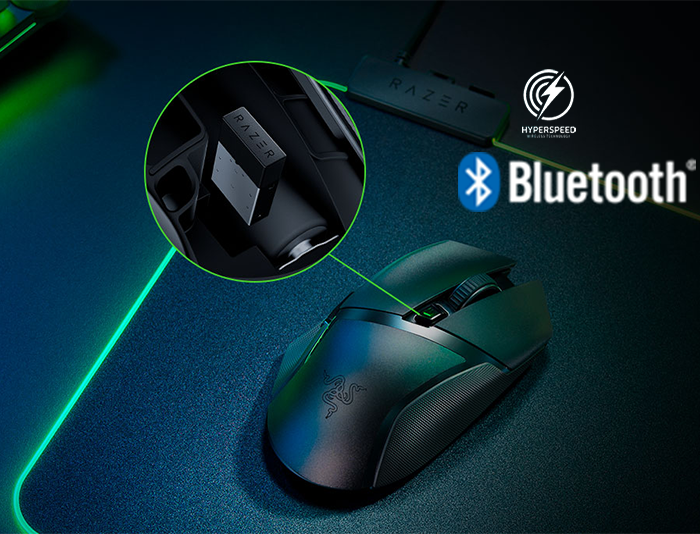 Chuột Gaming không dây Razer Basilisk X HyperSpeed Kết nối không dây Nhanh hơn 25% so với bất kỳ công nghệ không dây nào khác hiện có, bạn thậm chí sẽ không nhận ra rằng mình đang chơi game bằng chuột không dây do truyền tốc độ cao, độ trễ nhấp chuột thấp nhất và chuyển đổi tần số liền mạch trong môi trường ồn ào nhất, bão hòa dữ liệu. Bạn cũng có thể chuyển sang kết nối Bluetooth để kéo dài thời lượng pin. |