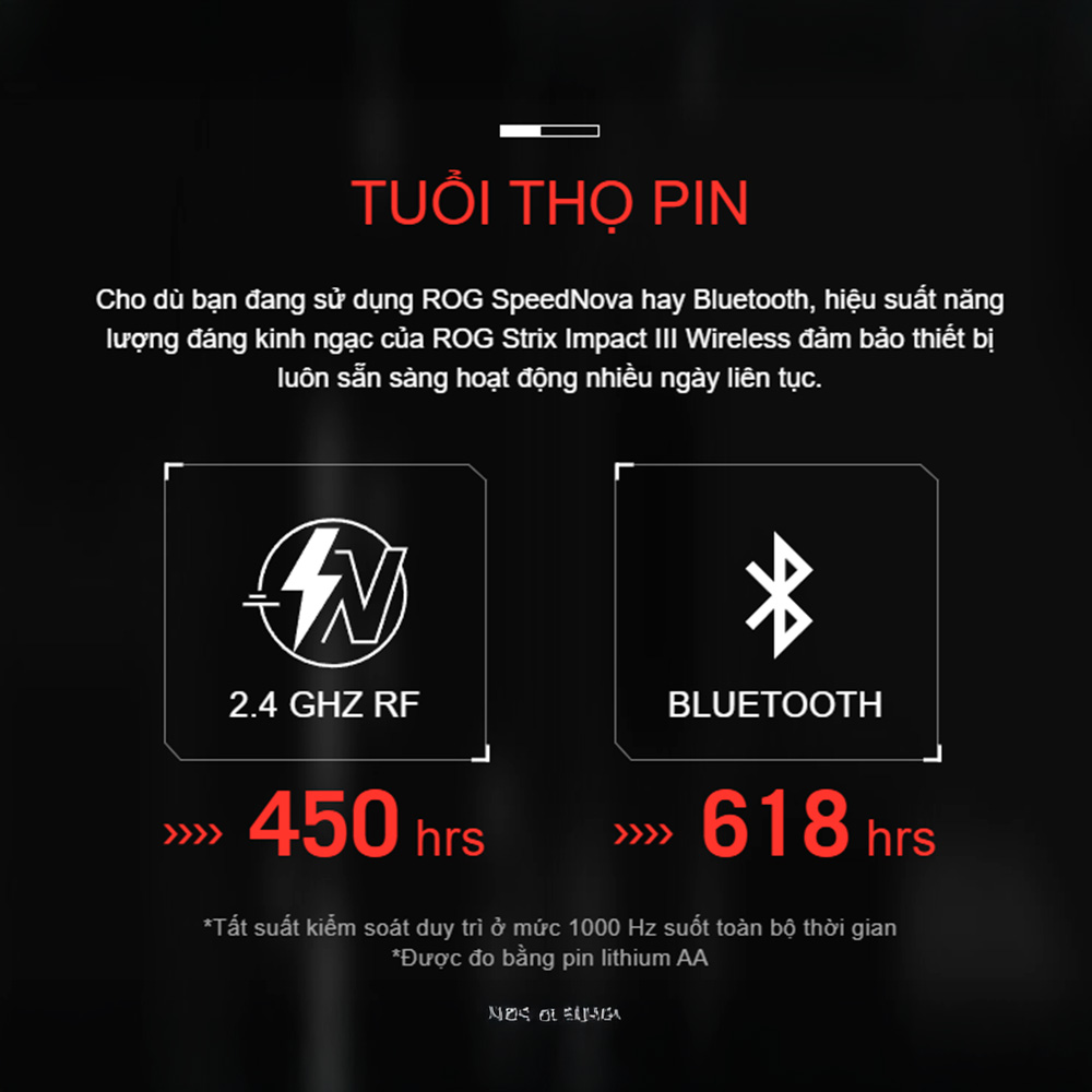 Điểm khác biệt lớn nhất của phiên bản này so với các dòng chuột sạc là việc sử dụng cơ chế năng lượng từ pin rời (hỗ trợ cả chuẩn pin AA và AAA). Bằng cách tối ưu hóa mức tiêu thụ điện năng xuất sắc, chuột có thể hoạt động bền bỉ lên đến 450 giờ ở chế độ kết nối RF 2.4GHz. Thậm chí, nếu chuyển sang chế độ Bluetooth để làm việc văn phòng, thời lượng sử dụng có thể kéo dài kỷ lục lên đến 618 giờ. Điều này có nghĩa là bạn chỉ cần lắp một viên pin tiêu chuẩn là có thể thoải mái sử dụng trong nhiều tháng liền mà không lo bị gián đoạn cuộc vui giữa chừng.