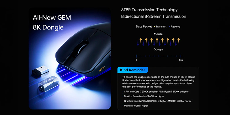 Tốc độ phản hồi 8000Hz dẫn đầu với Gem 8K Dongle tặng kèm