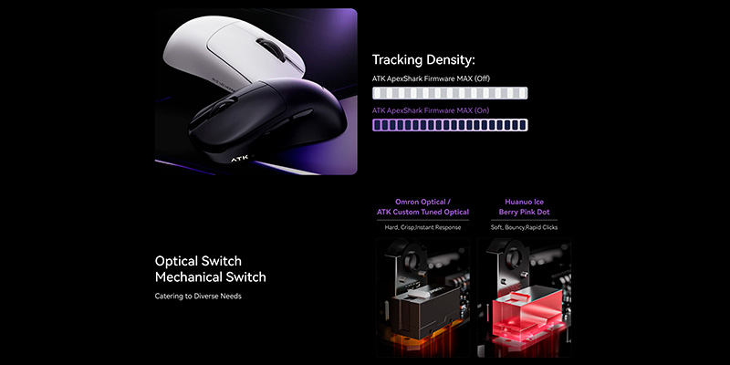 U2 Ultimate sử dụng switch Omron Optical / ATK Custom Tuned Optical cho độ bền cao, chống double-click tuyệt đối và mang lại cảm giác nhấn sắc nét, dứt khoát. Sự kết hợp này đem đến phản hồi nhanh và độ ổn định vượt trội, phù hợp cho các thao tác bắn, kéo tâm hay spam click trong game. Con lăn TTC Gold hoạt động mượt mà, chính xác và có độ bền cao, đảm bảo người dùng có thể cuộn nhanh hay điều chỉnh từng nấc một cách dễ dàng. Hệ thống switch và scroll wheel cao cấp mang đến trải nghiệm bấm – cuộn cực kỳ trọn vẹn.