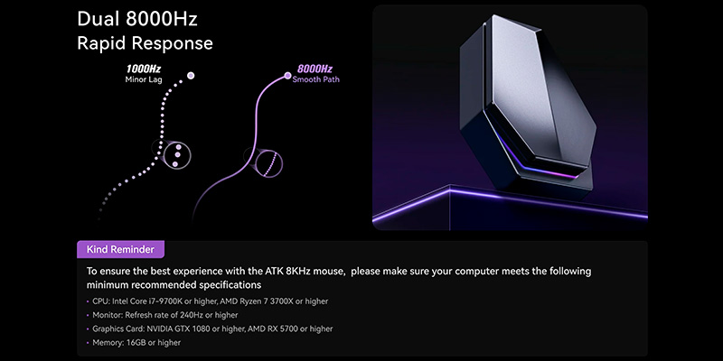 Chuột trang bị Gaming & Balanced Mouse Feet mang lại hành vi rê chuột mượt, nhanh và chính xác trên nhiều loại pad khác nhau. Các cạnh Feet được bo tròn giúp loại bỏ tình trạng cấn pad, đồng thời tăng sự mượt mà trong các thao tác di chuyển tốc độ cao. Đây là phần quan trọng giúp U2 Ultimate đạt hiệu suất ổn định và tự tin trong các tựa game FPS yêu cầu chuyển động nhanh. Hơn nữa, chuột đi kèm 8K dongle, đảm bảo tín hiệu cực mạnh và độ ổn định tối ưu khi chơi game ở cường độ cao.