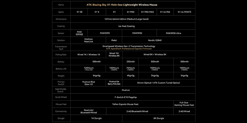 Chuột không dây ATK Blazing Sky X1 Pro Tri-mode Wireless Pixart 3950 được thiết kế theo phong cách hole-less (không lỗ) với trọng lượng siêu nhẹ chỉ 49g ±3g, giúp người dùng thao tác linh hoạt và chính xác trong mọi tình huống. Kích thước 127 x 64 x 40mm tối ưu cho game thủ có bàn tay vừa hoặc lớn, mang lại cảm giác cầm nắm chắc chắn và thoải mái. Lớp phủ Ice-Feel Coating độc quyền mang đến cảm giác mát lạnh khi cầm, đồng thời giảm trơn trượt hiệu quả. Sự kết hợp hoàn hảo giữa thiết kế tinh giản và công thái học giúp X1 Pro trở thành lựa chọn hàng đầu cho game thủ ưa chuộng sự cân bằng giữa tốc độ và kiểm soát.