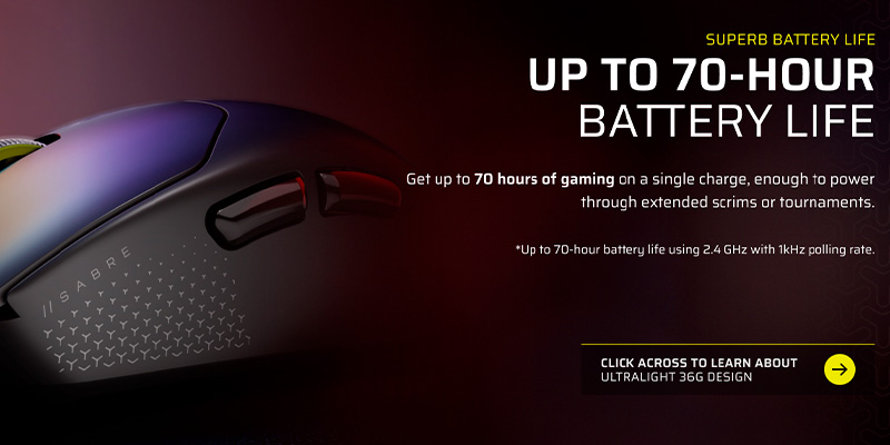 Vấn đề năng lượng được giải quyết triệt để với viên pin dung lượng cao, cho phép Chuột không dây Corsair SABRE v2 PRO UltraLight Wireless CH-931G000-WW hoạt động bền bỉ lên đến 70 giờ liên tục chỉ sau một lần sạc đầy. Thời lượng pin ấn tượng này đủ sức đáp ứng các giải đấu kéo dài nhiều ngày mà không cần lo lắng về việc gián đoạn để sạc lại. Bên cạnh đó, khả năng tùy biến của chuột được nâng lên một tầm cao mới thông qua CORSAIR Web Hub dựa trên trình duyệt web. Điều này có nghĩa là bạn có thể tinh chỉnh DPI, gán nút macro hay điều chỉnh hiệu ứng ánh sáng nhanh chóng trên bất kỳ máy tính nào mà không bắt buộc phải cài đặt các phần mềm điều khiển nặng nề, mang lại sự tiện lợi tối đa cho các game thủ hay di chuyển.