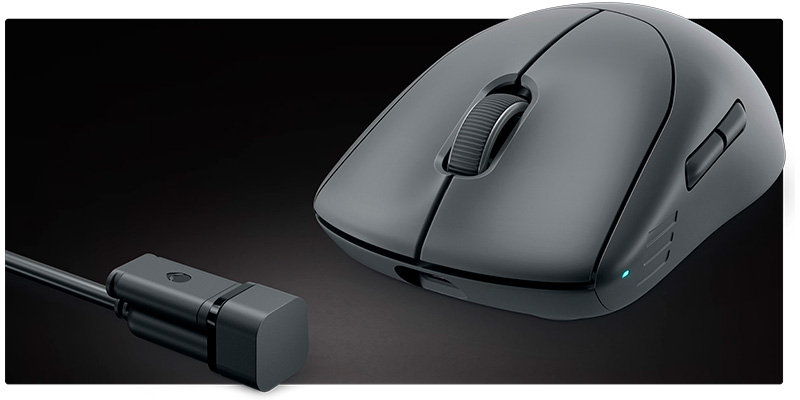 Dell trang bị cho sản phẩm này hai phương thức kết nối hiệu suất cao: 2.4GHz Gaming Wireless và USB có dây, đảm bảo độ ổn định và linh hoạt trong mọi hoàn cảnh – từ thi đấu, chơi game tại nhà cho tới làm việc văn phòng. Đặc biệt, chuột có thể đạt polling rate lên tới 4000Hz ở chế độ không dây và 8000Hz khi kết nối có dây, giúp giảm thiểu độ trễ đầu vào tới mức gần như bằng 0. Người dùng có thể dễ dàng chuyển đổi giữa các chế độ để phù hợp với từng tình huống, đồng thời tận dụng dây sạc USB-A to USB-C dài 2m bện vải siêu mềm, nhẹ để sạc và sử dụng song song mà không cản trở thao tác.