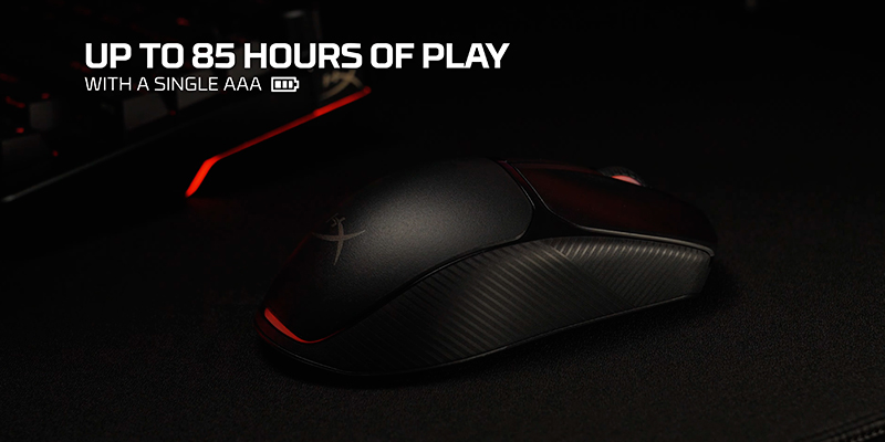 Một điểm mạnh ấn tượng của Chuột không dây HyperX Pulsefire Fuse RGB Wireless A1KY6AA là khả năng hoạt động liên tục lên đến 85 giờ chỉ với một viên pin AAA, giúp bạn sử dụng chuột nhiều ngày liền mà không cần sạc. Đây là ưu thế lớn cho những người thường xuyên di chuyển sử dụng chuột ở nhiều nơi như quán cà phê văn phòng phòng game hay khi công tác xa. Hơn nữa sản phẩm vẫn duy trì hiệu năng ổn định khi pin yếu và hỗ trợ chế độ tiết kiệm pin thông minh. Bạn cũng có thể dễ dàng thay pin chỉ trong vài giây đảm bảo chuột luôn sẵn sàng đồng hành cùng bạn ở bất cứ đâu.