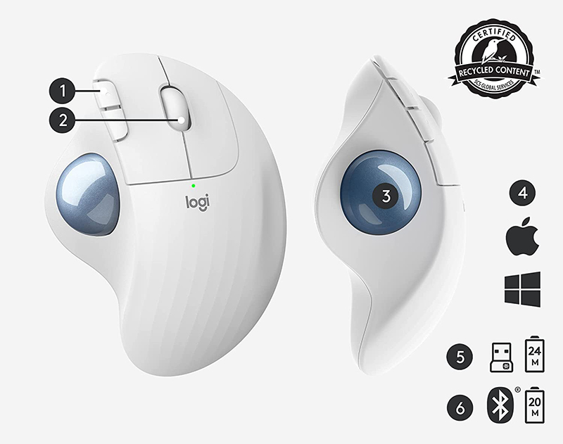 Kết nối dễ dàng với Windows và Mac Với hai cách kết nối, qua công nghệ Bluetooth tiết kiệm năng lượng hay đầu thu USB đi kèm. Logitech Ergo M575 đem lại tín hiệu mạnh mẽ, đáng tin cậy từ khoảng cách lên tới 10 m. Kết nối đến Windows hoặc macOS và không bao giờ phải lo về việc rớt mạng hay kết nối chậm trễ. |