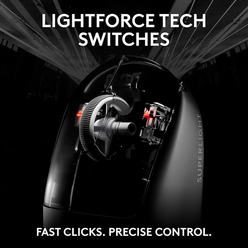 Logitech G Pro X Superlight 2C sử dụng switch Lightforce hybrid, kết hợp tốc độ phản hồi cực nhanh của công nghệ quang học và cảm giác nhấn cơ học truyền thống. Kết quả là game thủ có trải nghiệm nhấn chắc chắn, chính xác, đồng thời giảm thiểu tình trạng double-click. Switch Lightforce còn có tuổi thọ cao, đảm bảo hiệu suất ổn định cho những trận đấu căng thẳng.