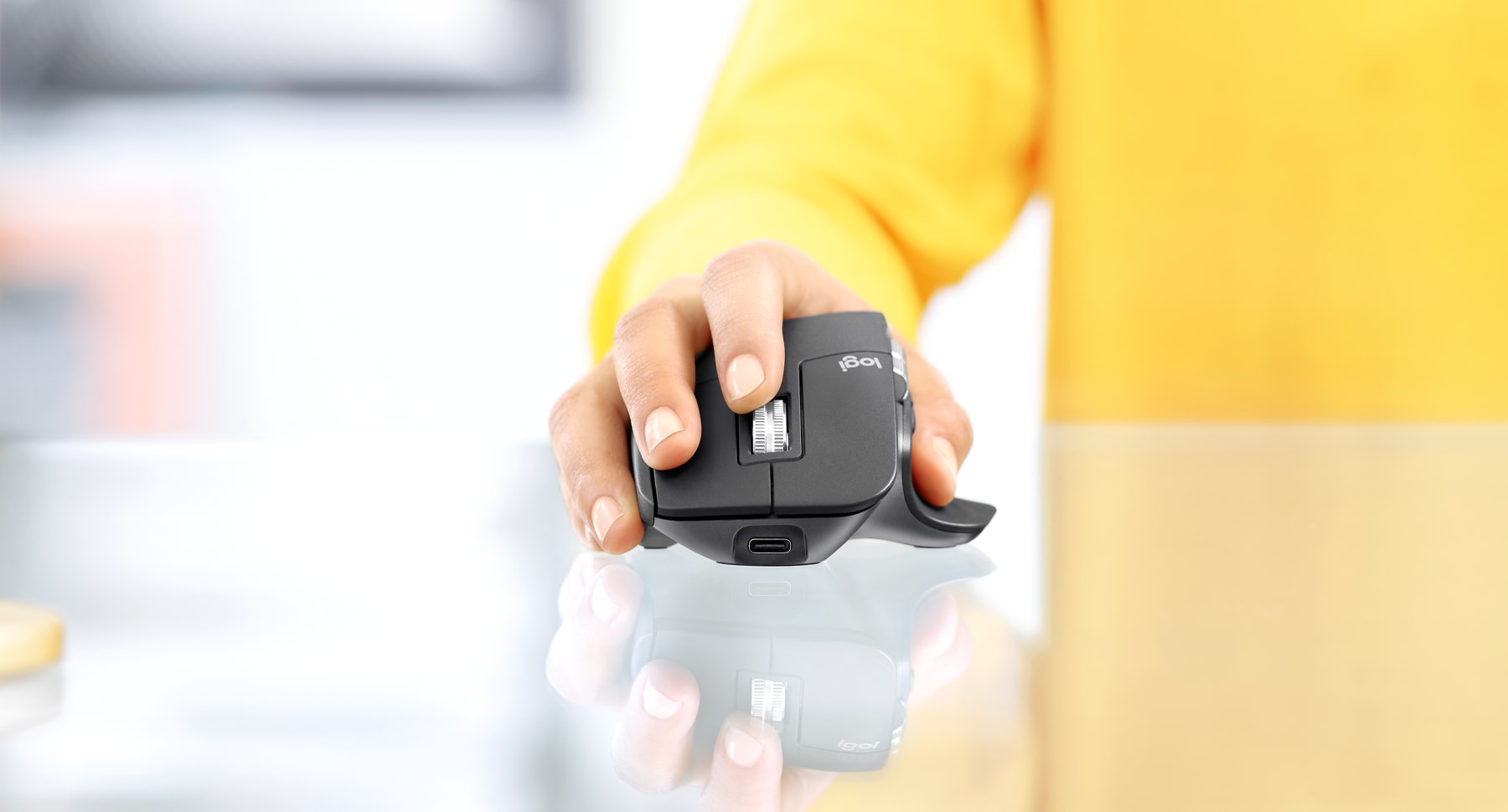 Sử dụng mọi nơi MX Master 3 có thể cảm biến hầu như trên mọi bề mặt, bao gồm kính có độ dày tối thiểu 4 mm. Do đó bạn có thể làm việc trơn tru trên bàn, tại quán cà phê yêu thích hay thậm chí trên ghế sô pha. |
