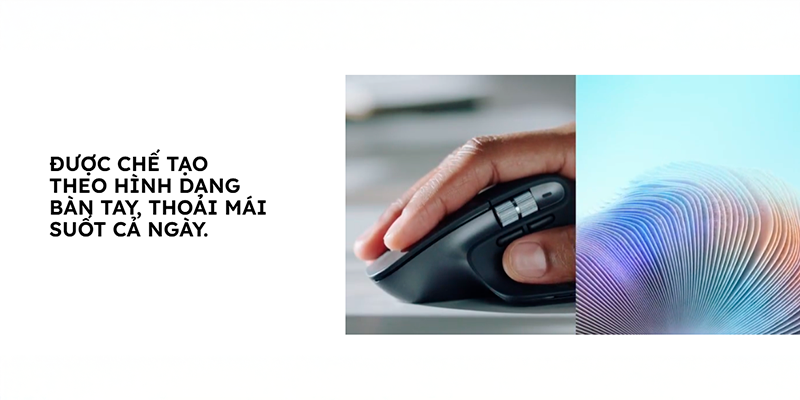 Chuột không dây Logitech MX Master 3S được thiết kế theo chuẩn công thái học, với kích thước 124,9 x 84,3 x 51 mm, vừa vặn lòng bàn tay, cho cảm giác cầm chắc chắn và thoải mái suốt cả ngày dài làm việc. Với trọng lượng 141g, chuột đủ đầm để mang lại độ chính xác cao khi thao tác, nhưng vẫn nhẹ đủ để sử dụng linh hoạt. Hình dáng đặc trưng của dòng MX hỗ trợ tối đa cổ tay và giúp người dùng tránh mỏi khi sử dụng liên tục nhiều giờ.