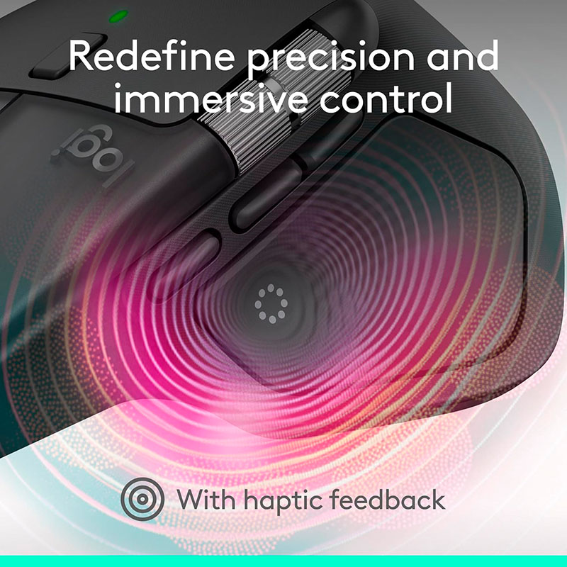 Logitech MX Master 4 mang đến tính năng đột phá với bảng cảm ứng rung phản hồi xúc giác, cho phép tùy chỉnh cường độ phản hồi và hành động trên Logi Options+. Người dùng có thể cảm nhận độ rung chính xác khi kéo thả, điều chỉnh thanh trượt, chuyển đổi màn hình hoặc quản lý thông báo. Tính năng này còn hỗ trợ plugin cho các ứng dụng chuyên nghiệp như Adobe Photoshop, Lightroom, Zoom và sắp tới là Premiere Pro, mang đến trải nghiệm trực quan và tăng tốc quy trình làm việc.