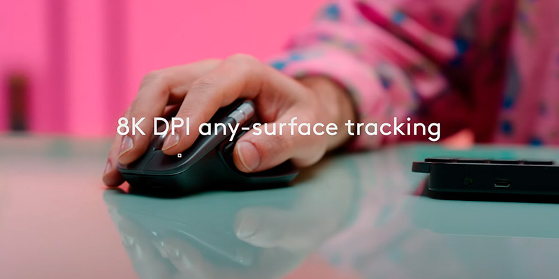 MX Master 4 tích hợp cảm biến Darkfield 200 – 8.000 DPI, có thể tùy chỉnh theo mức tăng 50 DPI, đảm bảo theo dõi chính xác đến từng pixel. Chuột hoạt động ổn định trên hầu hết các bề mặt, kể cả kính có độ dày tối thiểu 4mm. So với các dòng cơ bản, cảm biến mới này chính xác gấp 5 lần, hỗ trợ tốt khi làm việc trên màn hình độ phân giải cao và các tác vụ đòi hỏi độ chính xác tuyệt đối.