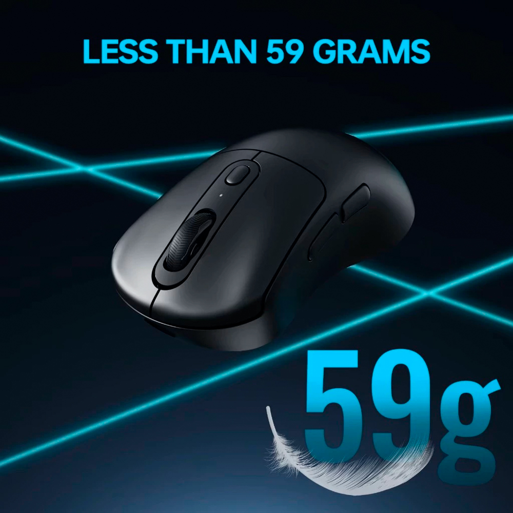 Trọng lượng 59g hiện đang là của xu hướng chuột eSports chuyên nghiệp. Kết hợp với thiết kế công thái học ôm tay và feet chuột làm từ vật liệu ma sát thấp, việc chuột nhẹ thực tế sẽ giúp bạn dừng/vẩy chuột (flick/tracking) chính xác hơn, phanh lại đúng lúc hơn.