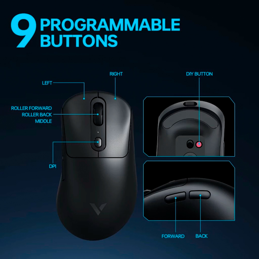 Chuột không dây Rapoo VT3 SE 1K cung cấp tới 9 nút bấm có thể lập trình chức năng. Thông qua phần mềm Rapoo Driver (hỗ trợ Windows), bạn có thể dễ dàng gán lệnh macro phức tạp, thay đổi DPI và lưu toàn bộ thiết lập này thẳng vào bộ nhớ trong (Onboard Memory) của chuột để mang đi thi đấu ở máy tính khác mà không cần cài lại app. Bên cạnh đó, thiết bị còn được trang bị hệ thống switch bấm đến từ thương hiệu Kailh nổi tiếng, mang lại tuổi thọ bền bỉ lên đến 20 triệu lần nhấn. Cảm giác click chuột được tinh chỉnh giòn giã, hành trình phím rõ ràng và độ nảy tốt. Vượt trội hơn các đối thủ cùng phân khúc.