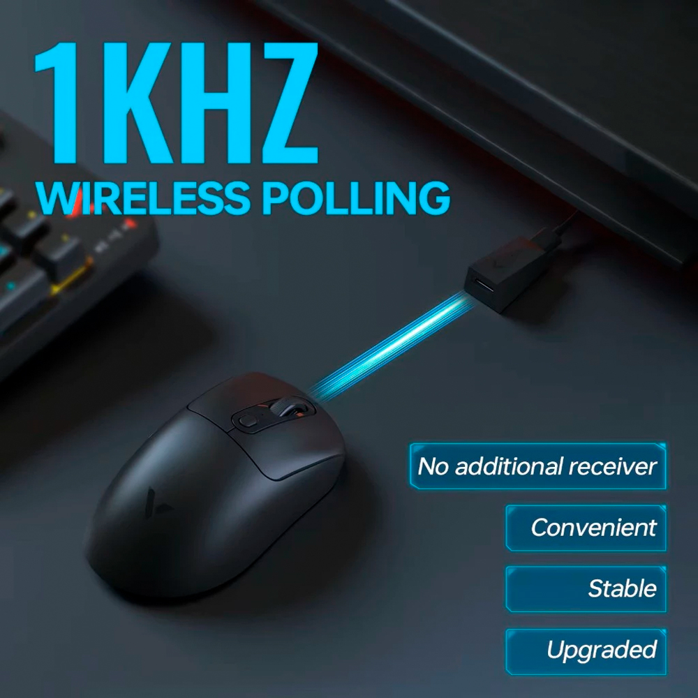 Ngoài ra, chuột không dây Rapoo VT3 SE 1K này hỗ trợ tần số phản hồi (Polling Rate) đạt mức 1000Hz (tương đương độ trễ chỉ 1ms). Sức mạnh này được tiếp sức bởi công nghệ không dây độc quyền V+ Wireless Gaming qua USB Receiver 2.4GHz, giúp tăng cường độ ổn định tín hiệu, chống nhiễu sóng trong môi trường có nhiều thiết bị phát mạng. Trải nghiệm kết nối không dây của bạn giờ đây sẽ mượt mà và phản hồi tức thì không khác gì cắm dây. Tất nhiên, khi cần, bạn vẫn có thể cắm cáp Wired vừa xài vừa sạc cực kỳ tiện lợi.