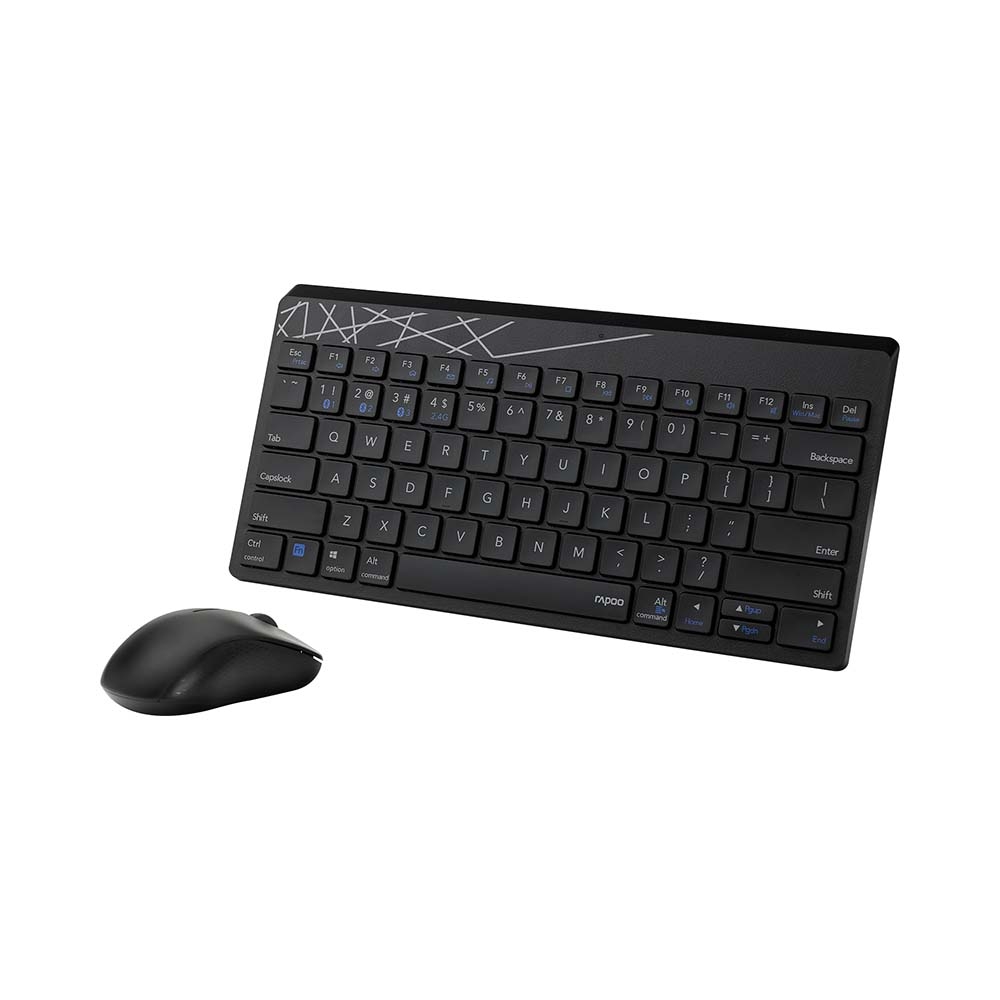 Combo Bàn Phím và Chuột không dây Rapoo 8000M gây ấn tượng mạnh mẽ với thiết kế siêu mỏng và nhẹ, tạo nên vẻ đẹp hiện đại và sang trọng cho không gian làm việc của bạn. Bàn phím với các phím chiclet êm ái và độ nảy tốt, mang lại cảm giác gõ phím thoải mái trong thời gian dài. Chuột được thiết kế công thái học, vừa vặn trong lòng bàn tay, giúp giảm thiểu mỏi cổ tay khi sử dụng liên tục.
