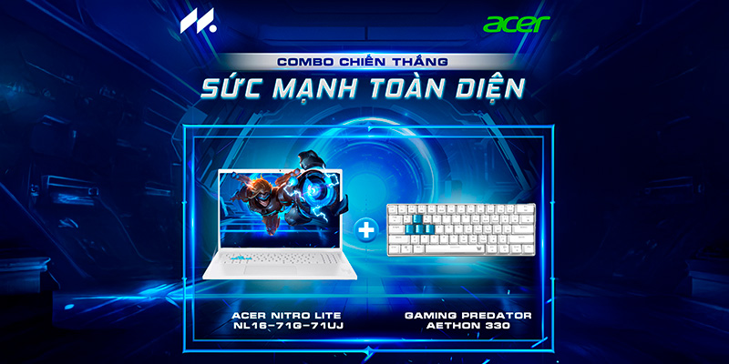 Combo Laptop Acer Nitro Lite NL16-71G-71UJ với Intel Core i7-13620H (10 nhân 16 luồng, xung nhịp tối đa 4.9GHz), card đồ họa NVIDIA GeForce RTX 3050 6GB GDDR6, RAM 16GB DDR5 và ổ cứng SSD PCIe Gen4 512GB, đi kèm màn hình 16 inch WUXGA 165Hz mang đến hiệu năng mạnh mẽ cho học tập, công việc lẫn giải trí. Đi kèm là bàn phím không dây Acer Predator Aethon 330, giúp tối ưu thao tác, độ phản hồi nhanh và không gian gọn gàng hơn. Đây là lựa chọn lý tưởng cho người dùng muốn sở hữu một setup đồng bộ, hiện đại và hiệu quả ngay từ đầu.