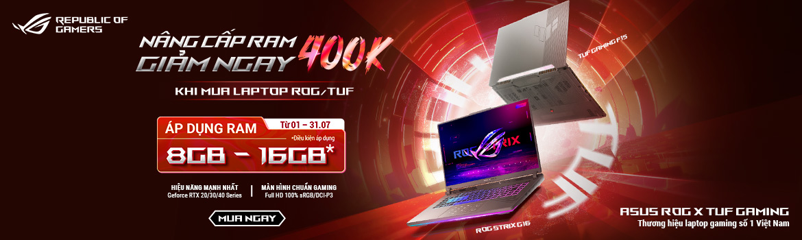 MUA LAPTOP GAMING ROG/TUF - GIẢM NGAY 400K KHI MUA RAM