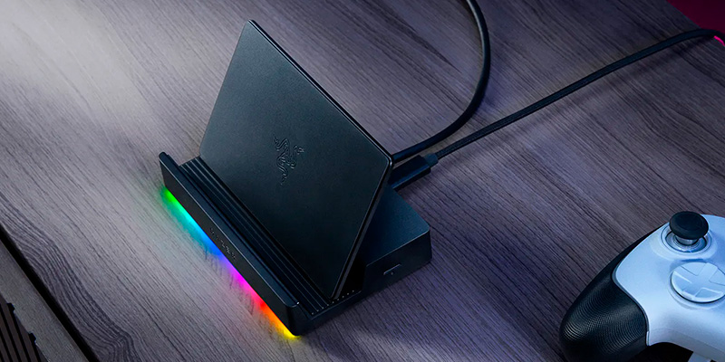 Đế sạc tích hợp hệ thống đèn nền RGB Razer Chroma, cho phép người dùng tùy chỉnh hiệu ứng ánh sáng đa dạng, đồng bộ hóa với các thiết bị Razer khác để tạo không gian gaming sống động và ấn tượng. Đây là điểm cộng nổi bật giúp Razer Handheld Dock Chroma vừa tiện ích, vừa nổi bật cá tính.