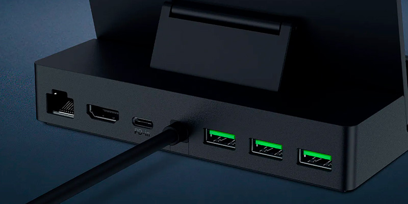 Dock hỗ trợ 1 cổng USB-C input với Power Delivery 100W, sạc nhanh cho thiết bị ngay cả khi đang sử dụng. Ngoài ra, bạn còn có thể kết nối thêm 3 cổng USB-A Gen 1 (5Gbps) cho chuột, bàn phím hoặc tay cầm, 1 cổng HDMI 2.0 hỗ trợ 4K@60Hz, và 1 cổng Ethernet Gigabit đảm bảo truyền tải mạng nhanh chóng, giảm độ trễ khi chơi game online.