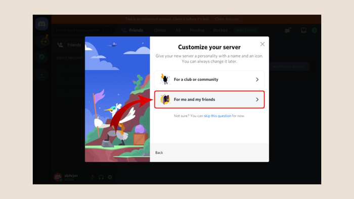 Bước 2: Bạn sẽ được yêu cầu chọn đối tượng tham gia cho server của mình: