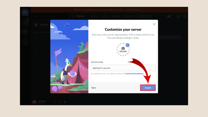3.2. Tạo server và mời bạn bè vào server