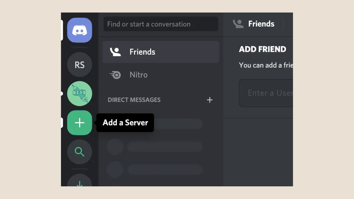 Bước 1: Nhấn vào biểu tượng dấu cộng (+) ở thanh bên trái của màn hình Discord.