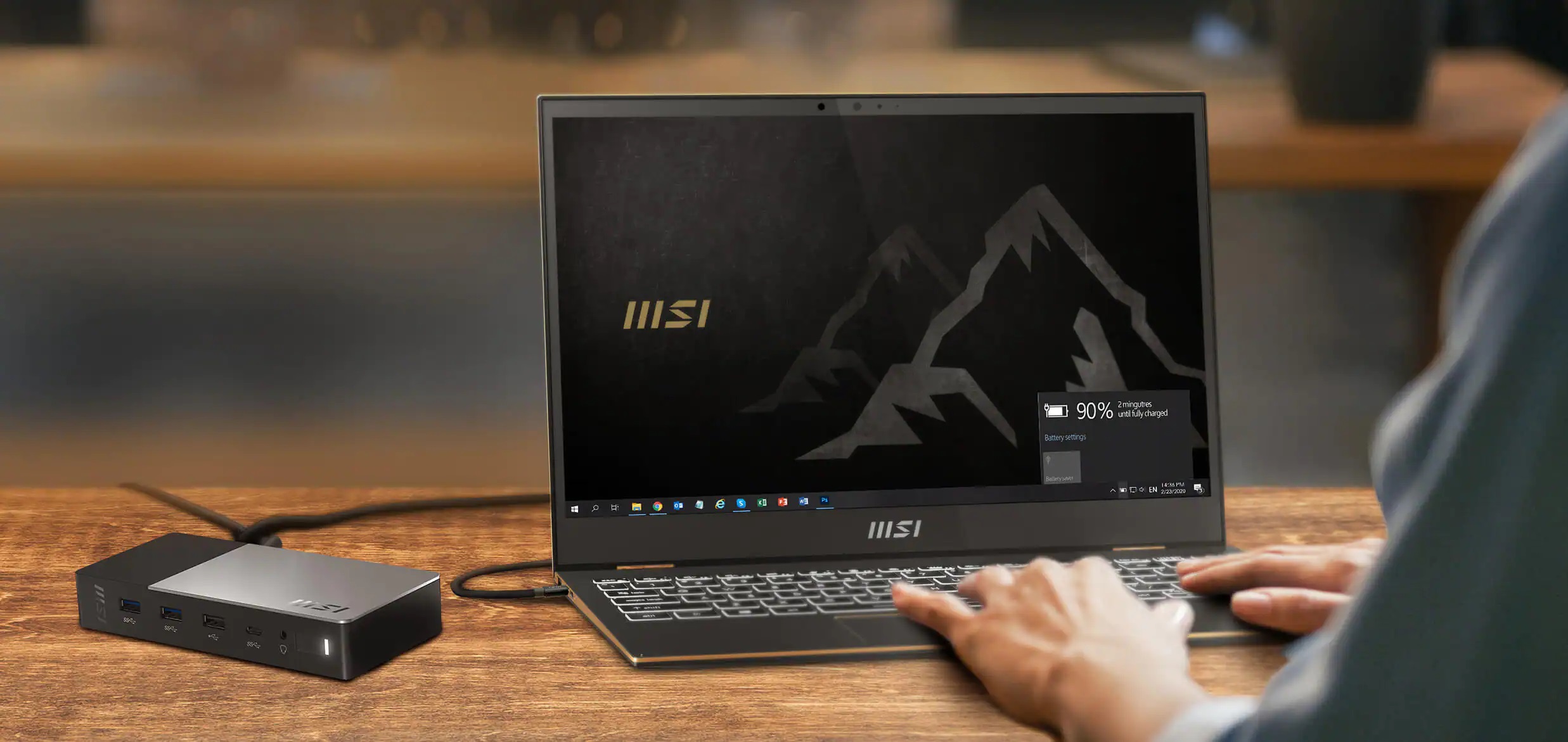 Hỗ trợ sạc với công suất 100W Không còn phải lo việc mang theo sạc cho laptop nữa, Docking USB Type-C MSI Station Gen 2 hỗ trợ công suất sạc tối đa 100W. Hãy toàn tâm toàn ý tập trung vào công việc hay thoải mái thư giãn, chẳng cần nghĩ ngợi tới việc sạc pin cho máy hay thiếu cổng kết nối. *Chỉ dành cho các mẫu laptop hỗ trợ sạc qua cổng USB-C chuẩn PD |