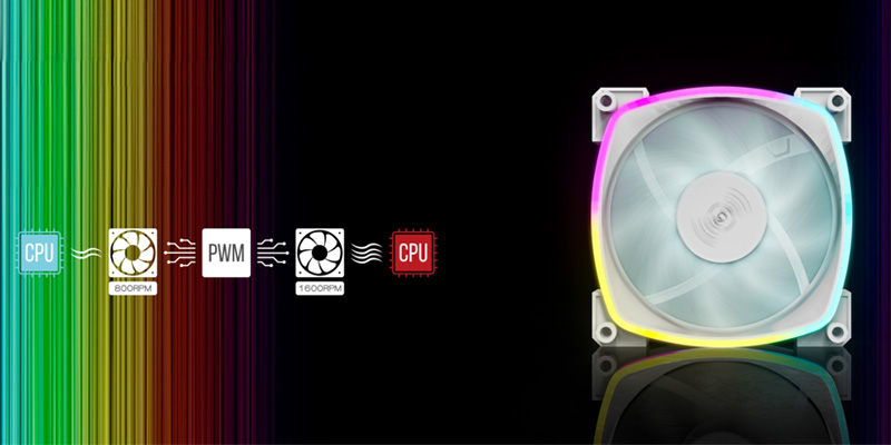 Nhờ các bộ điều khiển PWM tiên tiến, tốc độ quạt có thể được điều chỉnh dựa trên nhiệt độ hệ thống được bo mạch chủ giám sát thông minh, cho phép người dùng điều chỉnh tốc độ quạt theo ý muốn từ 800RPM đến 1600 RPM và làm mát PC hiệu quả.