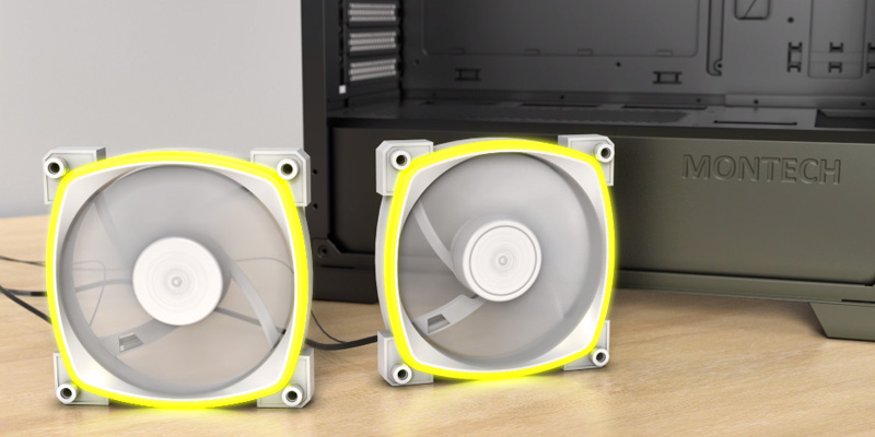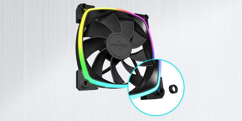 Fan Case Montech RX 120 PWM tích hợp 8 miếng đệm chống rung tròn của chúng tôi, giúp giảm độ rung và tiếng ồn do hiện tượng cộng hưởng.