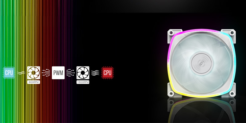 Nhờ các bộ điều khiển PWM tiên tiến, tốc độ quạt có thể được điều chỉnh dựa trên nhiệt độ hệ thống được bo mạch chủ giám sát thông minh, cho phép người dùng điều chỉnh tốc độ quạt theo ý muốn từ 800RPM đến 1600 RPM và làm mát PC hiệu quả.