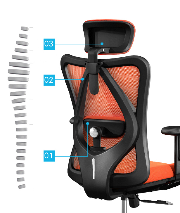 Tuỳ chỉnh vị trí thắt lưng Với khả năng tuỳ chỉnh lên xuống lên đến 5cm, cùng cao thấp 3cm ở vị trí tựa thắt lưng, Ghế công thái học SIHOO M18S ERC-18S giúp phân bổ lực nâng đỡ cột sống để đem lại cảm giác dễ chịu khi ngồi với thời gian dài. |