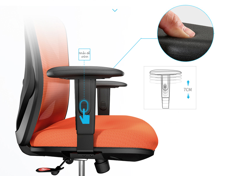 | Chiều cao kê tay | Điều chỉnh lên xuống 7cm |