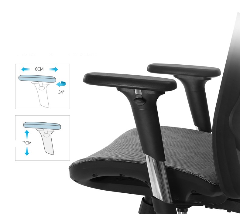 Tay vịn tự do điều chỉnh Tay vịn 3D Ghế công thái học SIHOO M57 ERC-57 với chất liệu PU dẻo đem lại cảm giác êm ái cùng khả năng thay đổi độ cao dến 7cm, qua lại 6cm và xoay 34° |