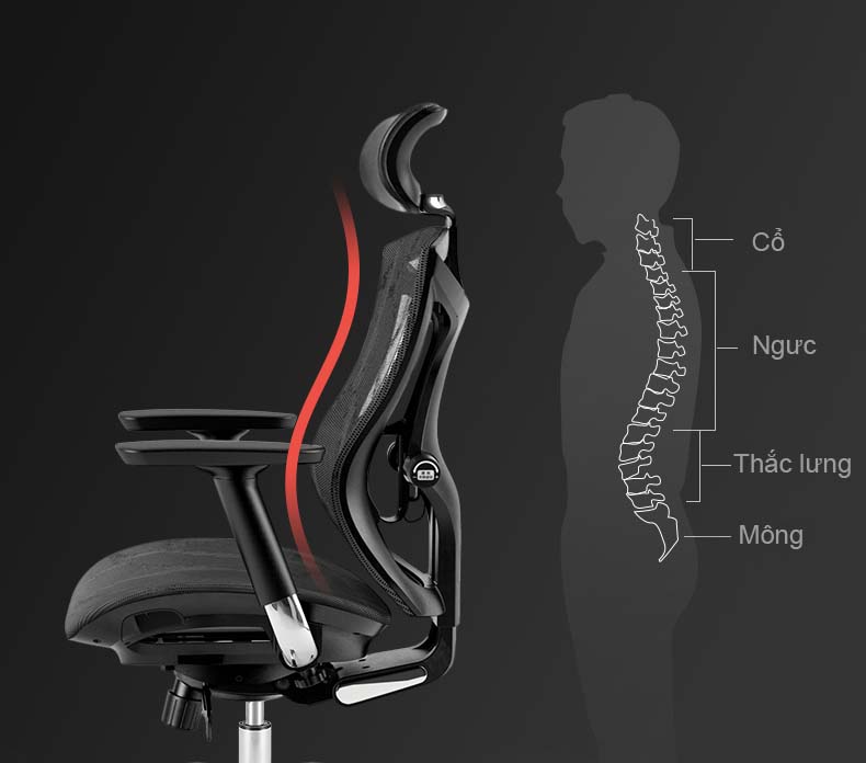 Tốt cho sức khoẻ Ghế công thái học SIHOO V1 thiết kế hỗ trợ cột sống, giữ gìn tốt cho sức khoẻ của bạn