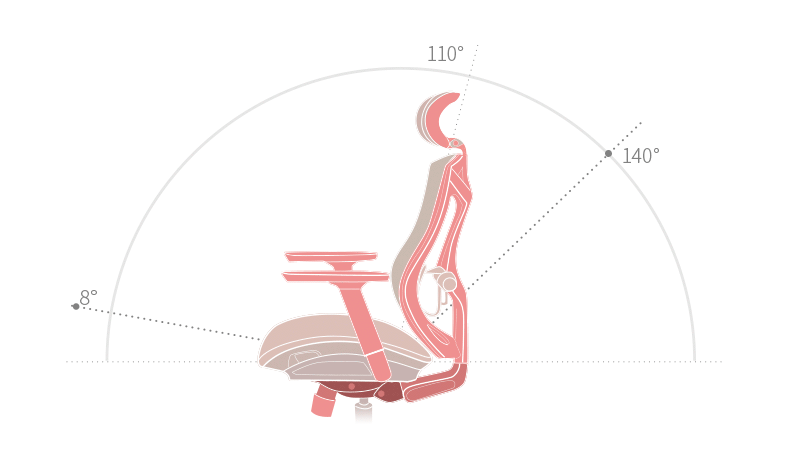 Góc nghiêng tùy chỉnh Ghế công thái học SIHOO V1 vthiết kế góc ngả lưng lên đến 140° để mang đến sự thư giản thoải mái nhất sau những trận game kéo dài. |