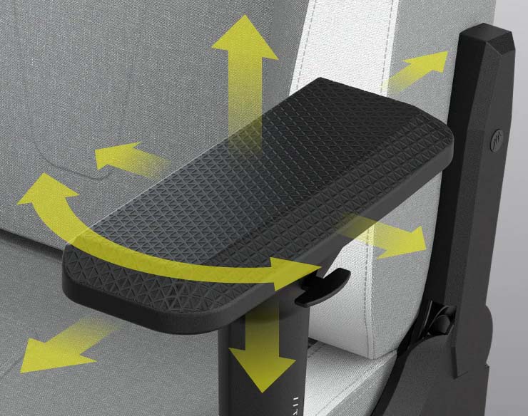 Tay vịn tự do điều chỉnh Tay vịn 4D cho phép bạn điều chỉnh theo bất kỳ hướng nào - lên hoặc xuống, trái hoặc phải, tiến hoặc lùi, hoặc xoay để hỗ trợ tư thế của bạn. |