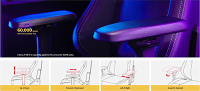 Tay vịn tự do điều chỉnh Tay vịn 4D cho phép bạn điều chỉnh theo 4 hướng riêng biệt - lên hoặc xuống, tiến hoặc lùi, trái hoặc phải hoặc xoay để hỗ trợ tư thế ngồi của bạn. |