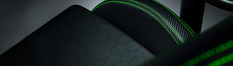 Chất liệu da tổng hợp cực bền Ghế Gaming Razer Iskur Black Green Leather được bọc bằng da PVC không chỉ tạo cảm giác thoải mái mà còn cứng và bền hơn so với da PU tiêu chuẩn, giúp ghế chống bong tróc dù sử dụng hàng ngày trong nhiều giờ. |