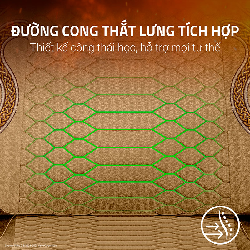 Yếu tố cốt lõi làm nên giá trị của Ghế Razer Iskur V2 X CS2 Counter-Strike 2 Edition chính là sự tập trung vào công thái học nhằm bảo vệ sức khỏe người dùng. Ghế tích hợp sẵn đệm thắt lưng (Integrated Lumbar) được thiết kế theo đường cong tự nhiên của cột sống, mang lại sự hỗ trợ vững chắc cho vùng thắt lưng mà không cần điều chỉnh thủ công phức tạp. Đệm ghế sử dụng PU Moulded Foam (Mút đúc PU) chất lượng cao, có khả năng giữ form tốt, không bị xẹp lún sau thời gian dài sử dụng, đồng thời cung cấp độ đàn hồi lý tưởng. Sự kết hợp giữa khung thép bền bỉ và lớp đệm dày dặn giúp người dùng duy trì tư thế ngồi đúng, giảm thiểu nguy cơ đau lưng, mỏi cổ khi tập trung vào các trận đấu kéo dài.