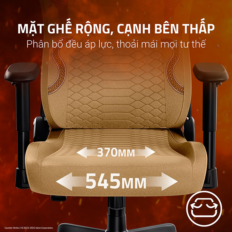 Ghế Razer Iskur V2 X CS2 Counter-Strike 2 Edition RZ38-05310500-R3UA là phiên bản đặc biệt dành cho các tín đồ của tựa game Counter-Strike 2, mang lại sự hỗ trợ tối ưu cho các phiên chơi game kéo dài. Với màu sắc và họa tiết độc quyền, chiếc ghế này không chỉ là một thiết bị hỗ trợ mà còn là một tuyên ngôn phong cách cá nhân trong không gian gaming. Ghế được thiết kế để chịu được trọng lượng lên tới 136 kg và phù hợp với người dùng có chiều cao từ 160 cm đến 190 cm, đảm bảo sự vừa vặn và thoải mái cho hầu hết game thủ. Vỏ bọc ghế được làm từ Multi Layered Fabric (Vải đa lớp) cao cấp, không chỉ bền bỉ, dễ vệ sinh mà còn cung cấp khả năng thoáng khí tuyệt vời, giúp người dùng luôn cảm thấy mát mẻ, đặc biệt trong môi trường khí hậu nóng ẩm.