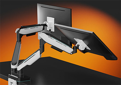 | Giá đỡ 2 màn hình Human Motion Monitor Arm T9 Pro II Dual Giá đỡ 2 màn hình Human Motion Monitor Arm T9 Pro II Dual được trang bị hệ thống treo lò xo với công nghệ trợ lực piston HumanForce 3.0 giúp bạn di chuyển màn hình theo bất kỳ hướng và độ cao nào bạn muốn để bạn có thể ngồi làm việc một cách thoải mái nhất về mặt công thái học. Bạn có thể thoải mái điều chỉnh màn hình để có vị trí xem tốt nhất, giúp tăng sự thoải và giảm mỏi mắt, lưng và cổ. Cánh tay giá đỡ có thể điều chỉnh độ cao, bạn có thể dời vị trí màn hình đi khi không sử dụng để giải phóng không gian rộng rãi hơn. |  |