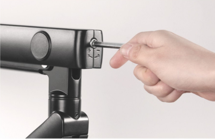 Điểm điều chỉnh lực đỡ lò xo Giá đỡ màn hình Human Motion Monitor Arm VelasX thay đổi trợ lực một cách dễ dàng thông qua điểm tùy chỉnh. |