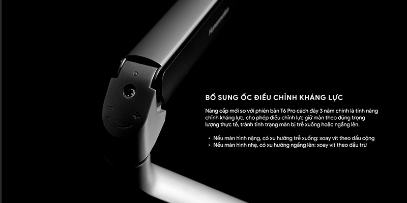 Với khả năng chịu tải từ 2 – 9kg, Human Motion T6 Pro 2025 phù hợp với nhiều loại màn hình, kể cả những mẫu màn hình nặng và kích thước lớn. Hệ thống điều chỉnh kháng lực thông minh giúp giữ màn hình ổn định trong mọi thao tác, hạn chế tối đa rung lắc và trượt khỏi vị trí, mang lại sự yên tâm tuyệt đối cho người dùng khi làm việc hoặc giải trí hàng ngày.