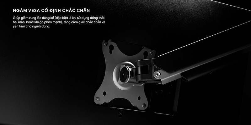 Sản phẩm hỗ trợ cách lắp đặt kẹp bàn hoặc khoan bàn, tương thích với độ dày mặt bàn từ 10 – 80mm khi kẹp bàn và 10 – 40mm khi khoan bàn. Nhờ đó, giá đỡ có thể lắp đặt trên hầu hết các loại bàn làm việc hiện nay. Ngoài ra, hệ thống khay đi dây thông minh được tích hợp giúp cố định và che gọn dây cáp, giữ cho không gian luôn sạch sẽ và gọn gàng, mang lại sự chuyên nghiệp và thoải mái trong quá trình sử dụng.