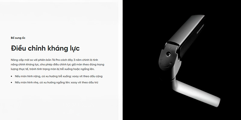 Thay vì bị gò bó bởi chiếc chân đế cố định cồng kềnh nguyên bản, T6 Pro mở ra sự tự do tuyệt đối trong không gian thao tác. Cánh tay đòn của chiếc giá đỡ có khả năng vươn xa tối đa lên tới 515mm, cho phép bạn kéo màn hình lại gần để gõ code chi tiết hay đẩy ra xa để thư giãn xem phim. Khả năng tùy chỉnh góc độ của khớp nối cũng vô cùng ấn tượng như: