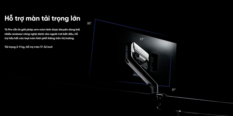 Tải trọng lớn, tự tin nâng đỡ các dòng màn hình từ 17 đến 32 inch