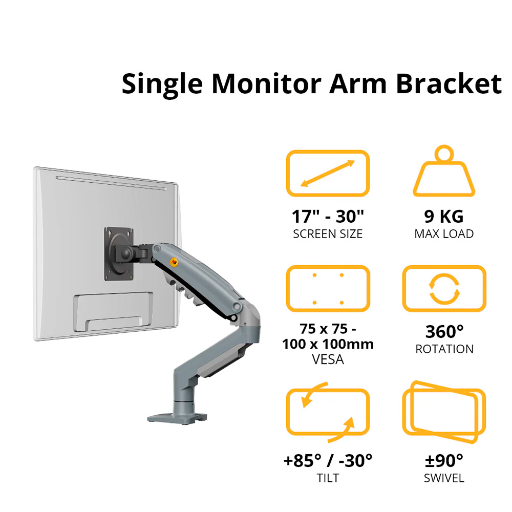 Giá đỡ màn hình North Bayou 17-30 Inch F80-XV GRAY F80-XV-GRA là phiên bản màu xám cao cấp đến từ thương hiệu North Bayou, sở hữu thiết kế hiện đại, sang trọng và tinh tế, rất phù hợp với không gian làm việc có tông màu sáng hoặc decor phong cách tối giản. Sản phẩm tương thích với màn hình từ 17 đến 30 inch, đáp ứng đa dạng nhu cầu sử dụng từ văn phòng đến học tập tại nhà. Nhờ khả năng chịu tải lên đến 9kg, bạn hoàn toàn yên tâm sử dụng với những mẫu màn hình kích thước lớn và nặng. Không chỉ đơn thuần là một giá đỡ, đây còn là giải pháp giúp giải phóng không gian, tạo cảm giác gọn gàng, nhẹ nhàng, tối ưu hiệu suất làm việc.