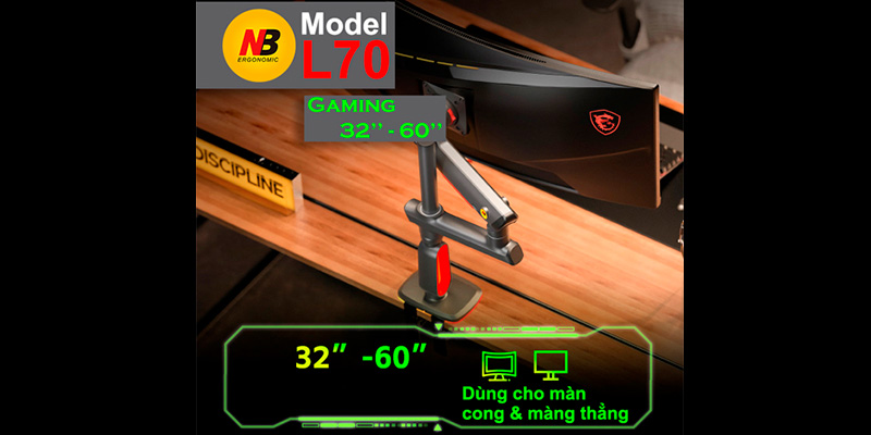 North Bayou NB L70 được thiết kế để lắp đặt đơn giản với các phụ kiện đi kèm, giúp bạn dễ dàng gắn màn hình mà không mất quá nhiều thời gian. Hệ thống quản lý cáp thông minh giúp giữ không gian làm việc gọn gàng, tránh tình trạng rối dây gây mất thẩm mỹ.