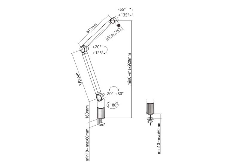 Tương thích với giá treo Giá đỡ Microphone HyperWork Arm Mic MA-01 tương thích với giá treo Mic 3/8 và 5/8 Inch và hỗ trợ trọng lượng Mic tối đa đến 1kg.