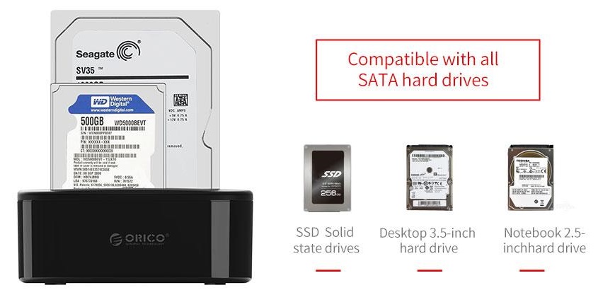 Tương thích cực tốt - Orico 6228US3 Docking Station tương thích với Windows 98, 2000, XP, 2003, Vista, 7, 2008, Windows 8, 8.1, Windows 10 32 hoặc 64Bit, Linux kernel 3.0 hoặc cao hơn và Mac Desktop & Laptop với USB3.0 có sẵn hoặc USB2. 0 host. - Hỗ trợ kết nối máy tính, PC, Router, PS4, Smart TV. - Hỗ trợ kĩ thuật, cập nhật Firmware liên tục và hoàn toàn miễn phí. - Orico 6228US3 Docking Station tương thích với cả 2,5-inch và 3,5-inch SATA HDD hoặc SSD với dung lượng lên đến 8TB.